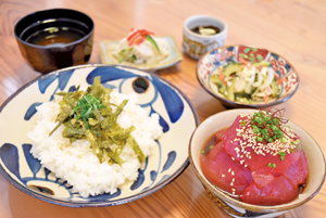地元の食材を使った島料理の店。島野菜をたっぷり使ったランチや伊良部島で水揚げされたマグロやカツオを美味しく料理。テレビで紹介された宮古ぜんざいも人気。
